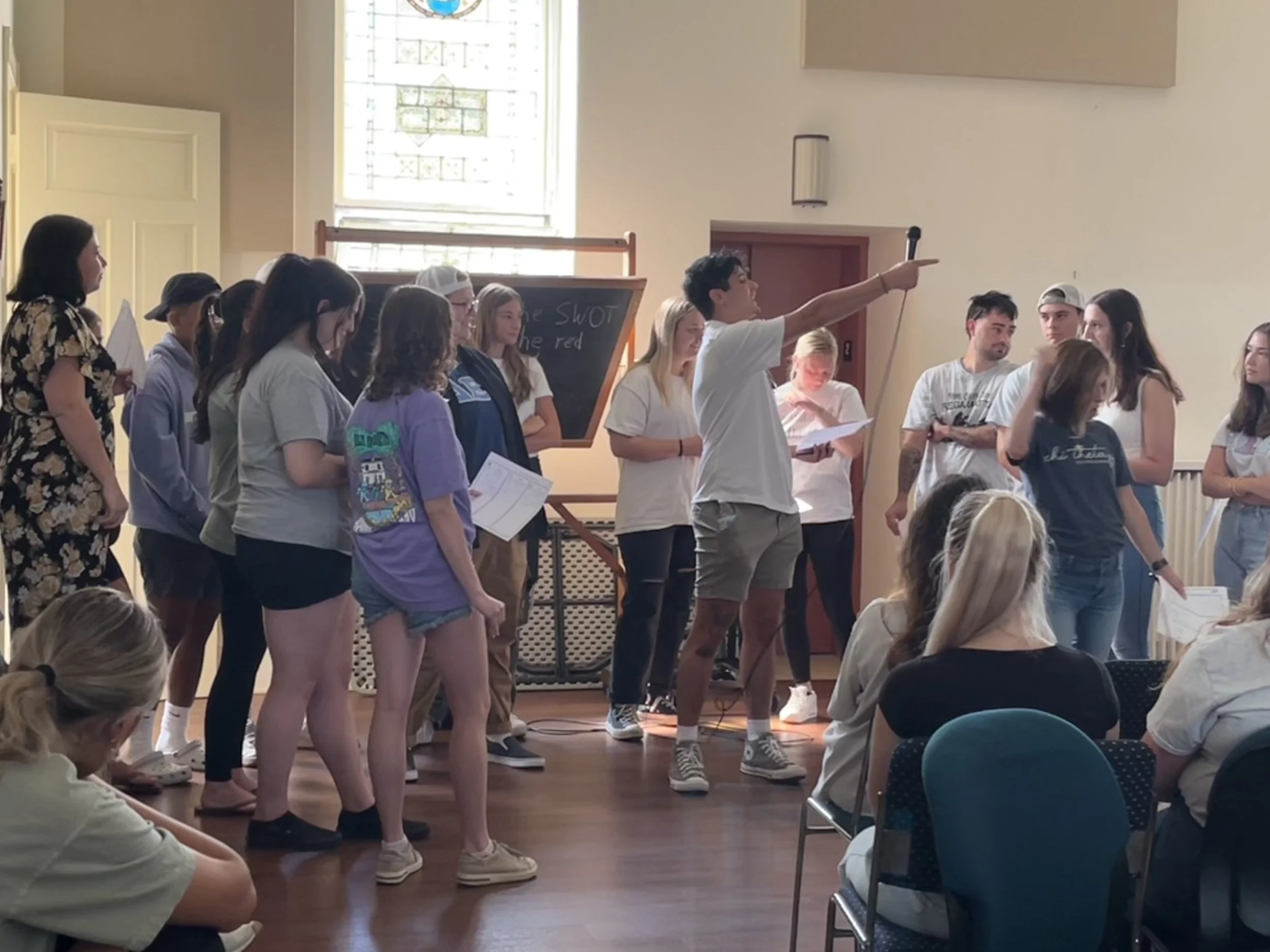 After the introductions, a brief period advertised as “fun stuff” in the Agenda followed. It was a “ice breaker” exercise that had students dividing into groups of unfamiliar other Greek students and collaborating to fill out the “Rose, Thorn, Bud” sheet shown in the photo.